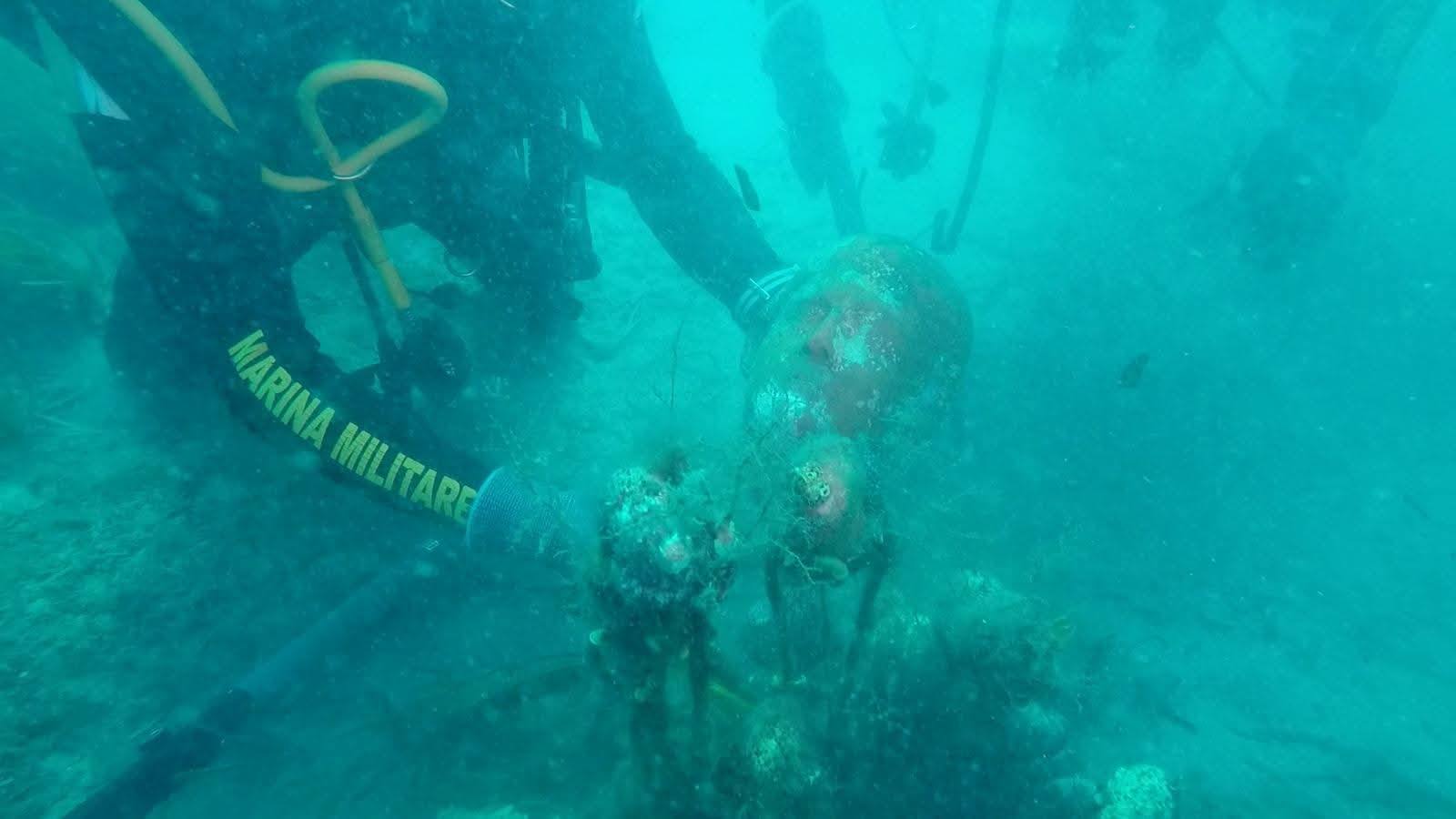 In intro de un’operatzione de chirca e de bonìfica de un’ordignu bèllicu in sos fundales marinos de Pula, su nùcleu Sdai Casteddu de Comsubin coordinadu dae su Capitanu de corveta Gabriele Paparo at individuadu una conca de terràllia imboligada in una retza pro piscare.