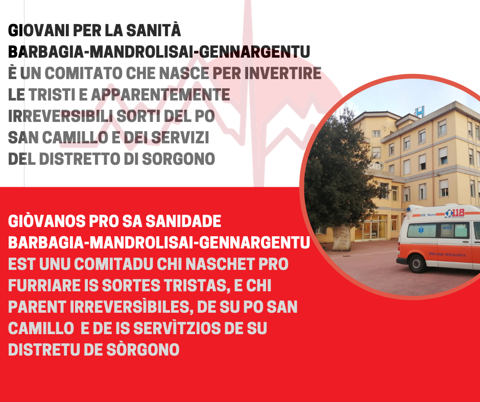 - Giòvanos pro sa sanidade Barbagia-Mandrolisai-Gennargentu est unu comitadu chi naschet in manera ispontànea, collende cun una lìtera aberta prus de 1200 adesiones de under 40 de su territòriu – e non petzi – pro furriare is sortes tristas, e chi parent irreversìbiles, de su PO San Camillo e de is servìtzios de su Distretu de Sòrgono.